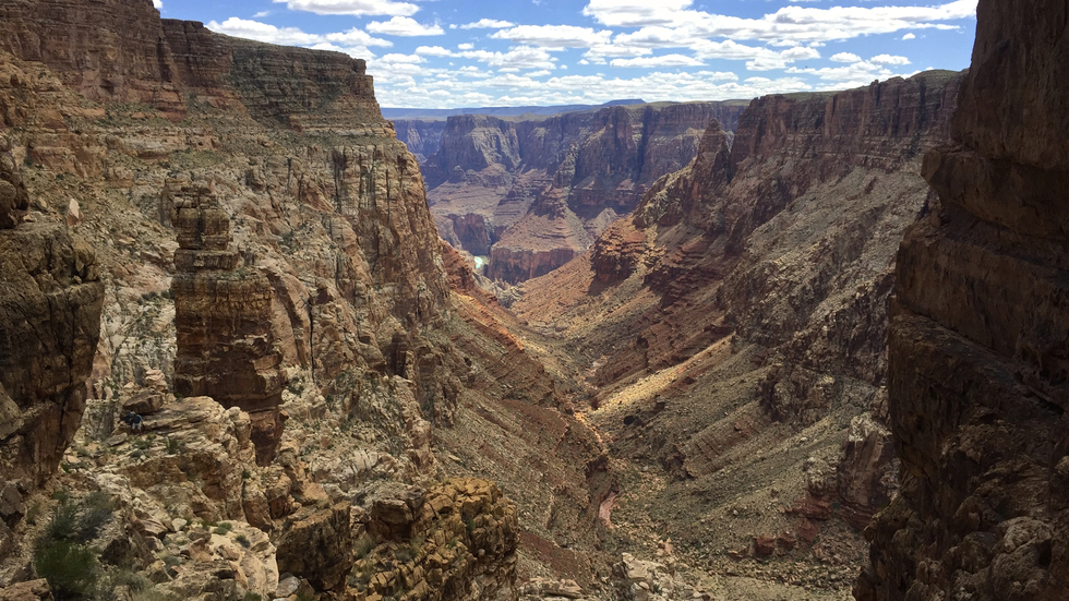 Joel takes a break at the monument while I get started at the bottom of the chute.
