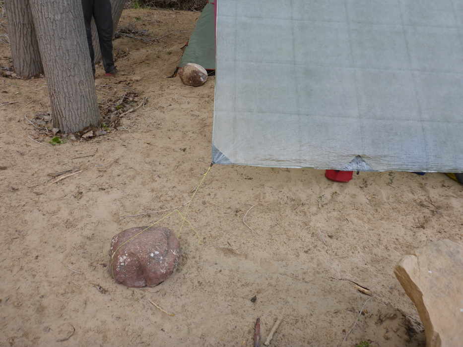 We setup camp near the opening of Death Hollow. Everything is sandy and stakes don't hold well, so we used big rocks to anchor our group tarp (it was raining on and off for several hours, with some strong and cold winds). This is probably one of the more popular areas in the canyon, so I would recommend camping elsewhere if you want privacy.