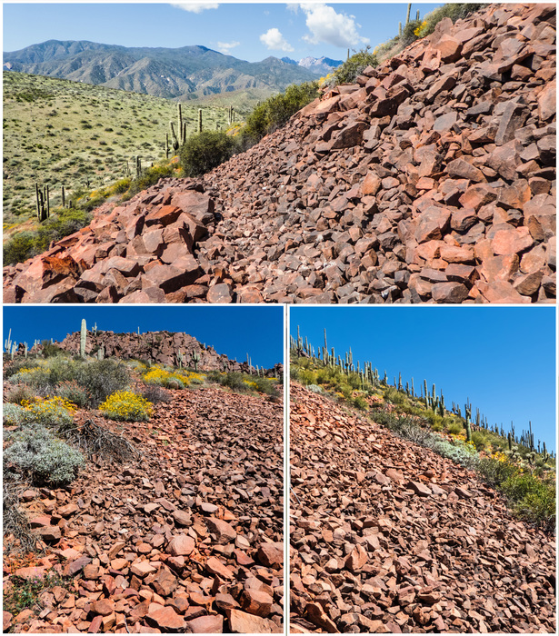 "Scree shots" along the side, up and down Peak 3511. I like the sound it makes when you walk across this scree; that hollow sound.