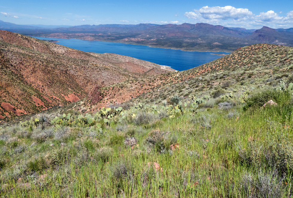 a view of the northern area of Roosevelt Lake and the mountains on its east side.