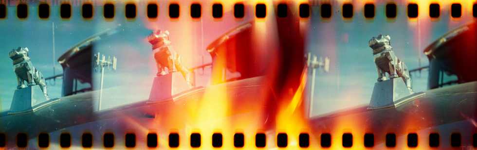 I cut up a notch in the top of a roll of expired 35mm and then in the dark, unrolled it to the end, then taped it to a marker cap, rerolled it and jammed it into my square format childhood camera, a Kodak Instamatic X-35F. I knew it would leak but I wanted it to some, but I did tape one side that I was able to to see obvious light through. After each shot, I twice wound the camera and fired off the shutter with the lens held against my arm. This was necessary to have the film advance enough to not overlap too much. I didn't know what it would do so I shot a few of the same scene.