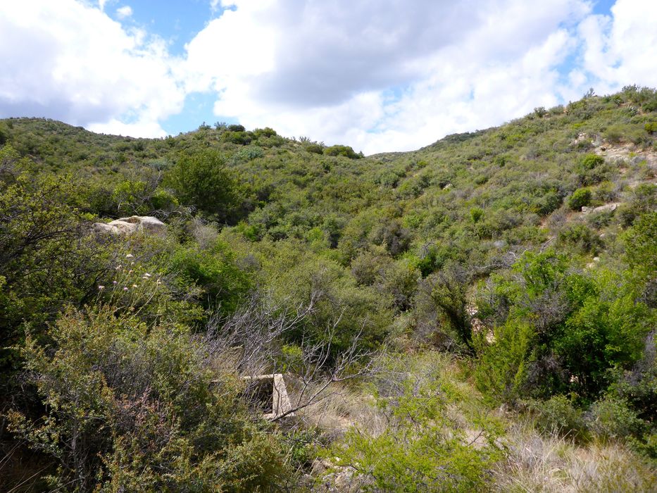 Looking across the two dry tanks towards the ridge I planned on bushwhacking, but which I ended up skipping, as there was entirely too much hikerwhacking going on.