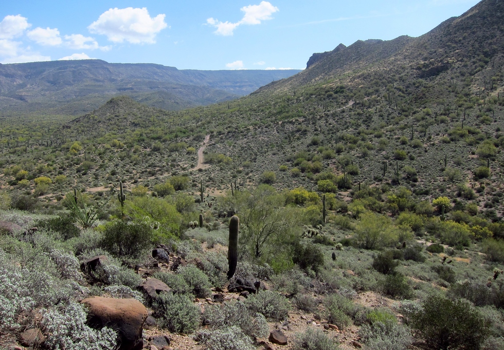 Looking (and walking) east from a small high point. Will return on the high ridge at right.