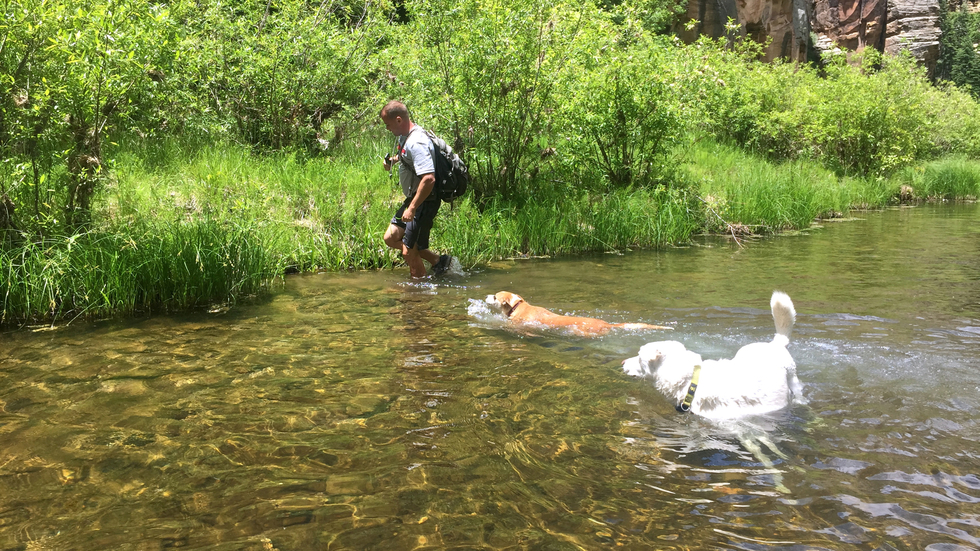 Lily swims. Blanco didn't have to swim all day because his legs were always long enough to wade.