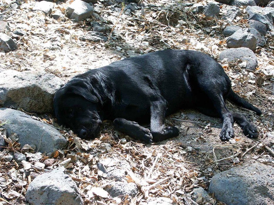 Duke, nursing sore paws, rubbed raw by the calcium chloride coated rocks in the creek. I rubbed Anbesol on the sores so he could make the short hike out to the car without to much pain. Dog boots are in his future and are highly recomended for your dog if you bring them with you while hiking Fossil Creek.