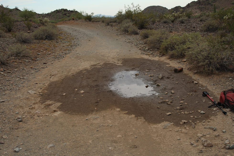 Lots of animal tracks around this puddle on the 100 near the park divide.