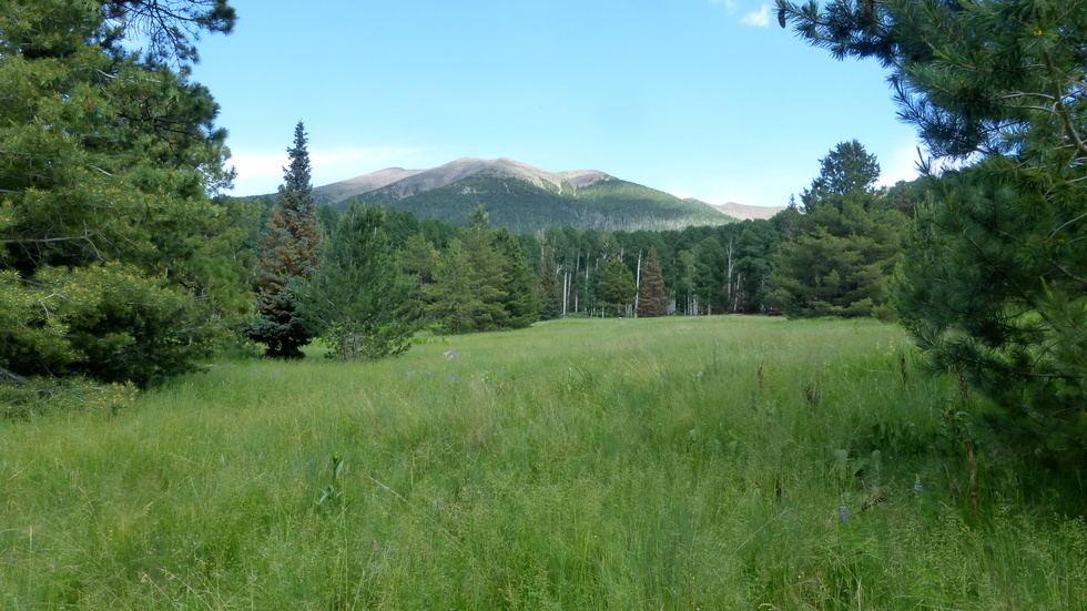 Most of the hike, Humphreys was getting wet. Blue skies now.