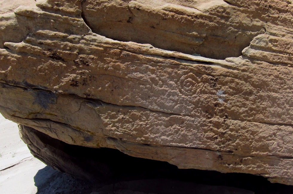 A prominent rock with an old glyph.