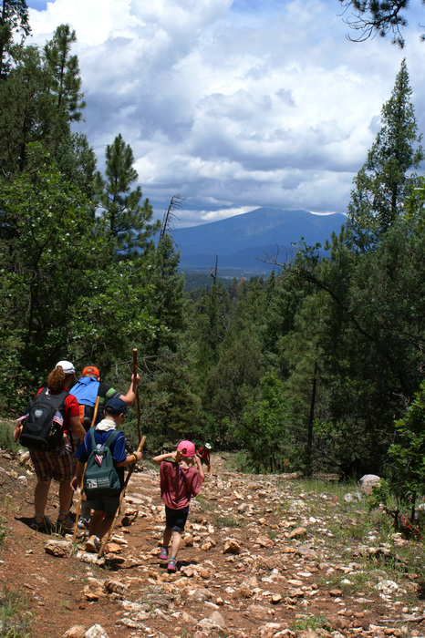 Just past the 128 as the trail descends into Walnut Canyon, our first views of the SF Peaks!