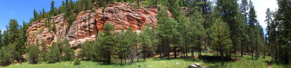 The "Red Rocks" of Walnut Canyon Panorama including the trail to Marshall Lake to the right