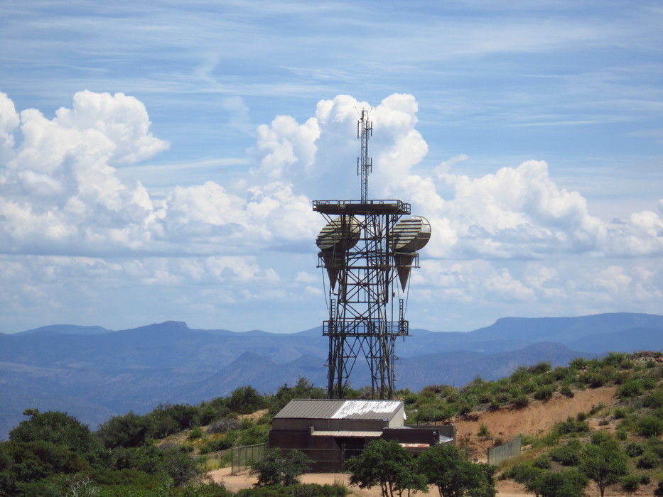 This is the AT&T Long Lines Tonto Basin Repeater linking Usery Pass to Pinal Peak. The Superstition Mountains block a direct shot so this is the link in that path. The Site is no longer active however it was 100% generator powered no grid power at this location. A 10k gallon tank for diesel is located below the building which was filled by trucks. The generators and other equipment are long gone.