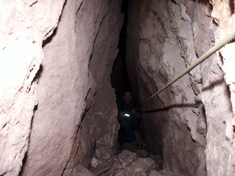 After rappeling in you can go deeper using the rope, hand over hand for assistance