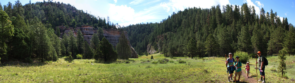 Panorama of Walnut Canyon with Fisher Point above left.
