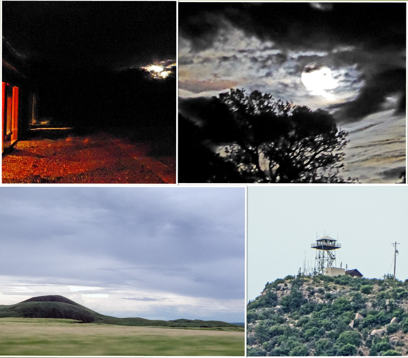 Lower photos: on the way toward Springerville. And, this is the first time I've seen the fire tower northish off of the 260. The above photos are from the cabin when I was trying to catch the blue moon. I don't know how to shoot the moon with the new camera.