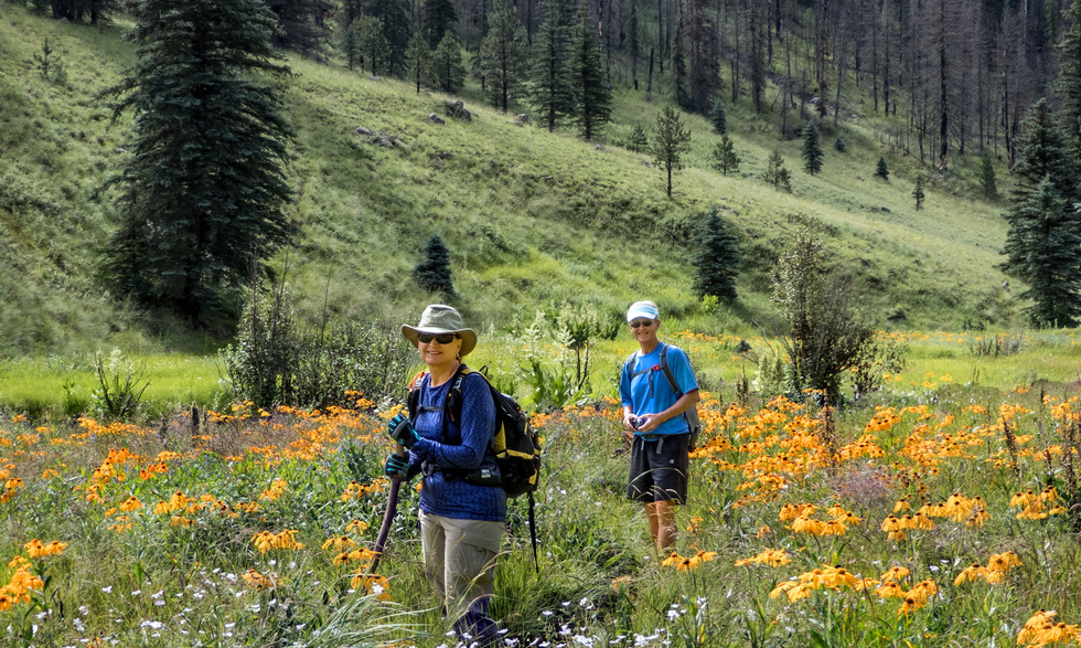 The trail goes right in the middle of all these flowers; mostly Sneezeweed