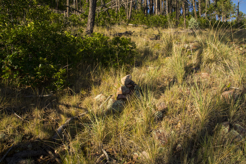 Apparently, this is not the pile of rocks to turn for the summit (I would later find the right pile of rocks, 100' down the MDT.
