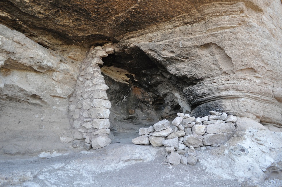This rock shelter has a BRM at the entrance and two BRM to the left in the flat area. There are also several BRMs to the right and cupules.