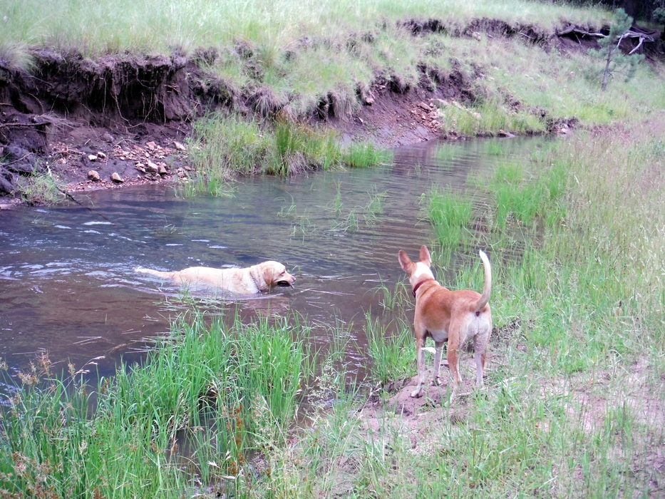 Bruno is more of a swimmer than Lily