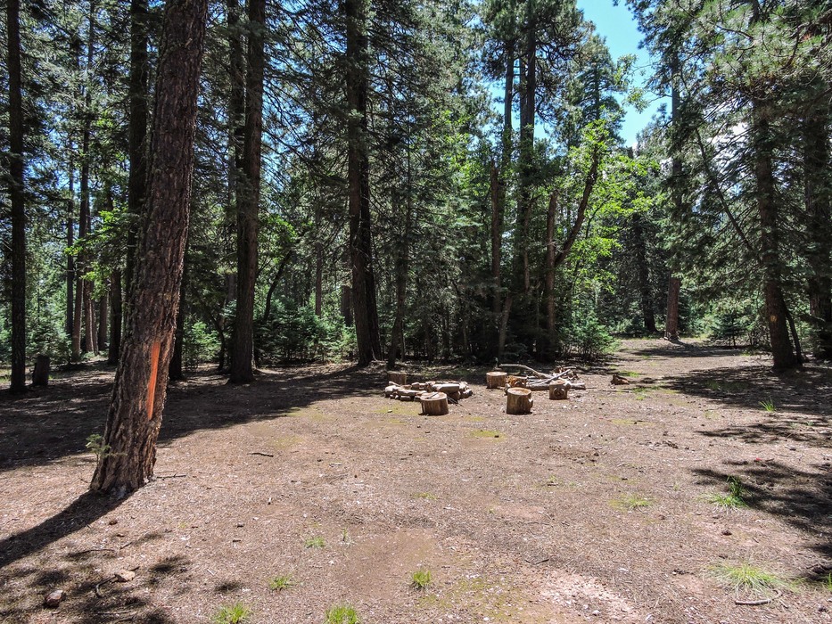 This was another campsite approximately 100 yds off the road in the dispersed motor vehicle camping section of FR145. Its amenities included trees screening it from the road, a big fire pit, and log rounds to sit on. Lots of room to park extra vehicles are a camping trailer.