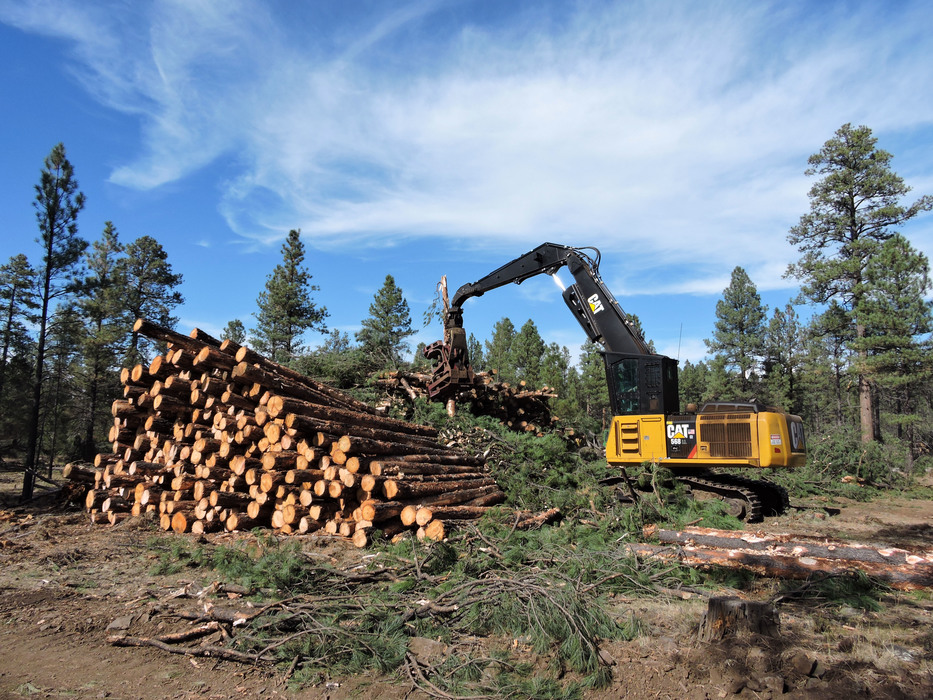 The logs and associated debris were being sorted into three stacks. One stack of log sections large enough for lumber, another stack of smaller log sections for the chip mills, and a third pile of limbs and small trees for composting. All debris was being removed from the forest and the trees cut close to the ground so finished areas would quickly recover to being a prairie with scattered trees.