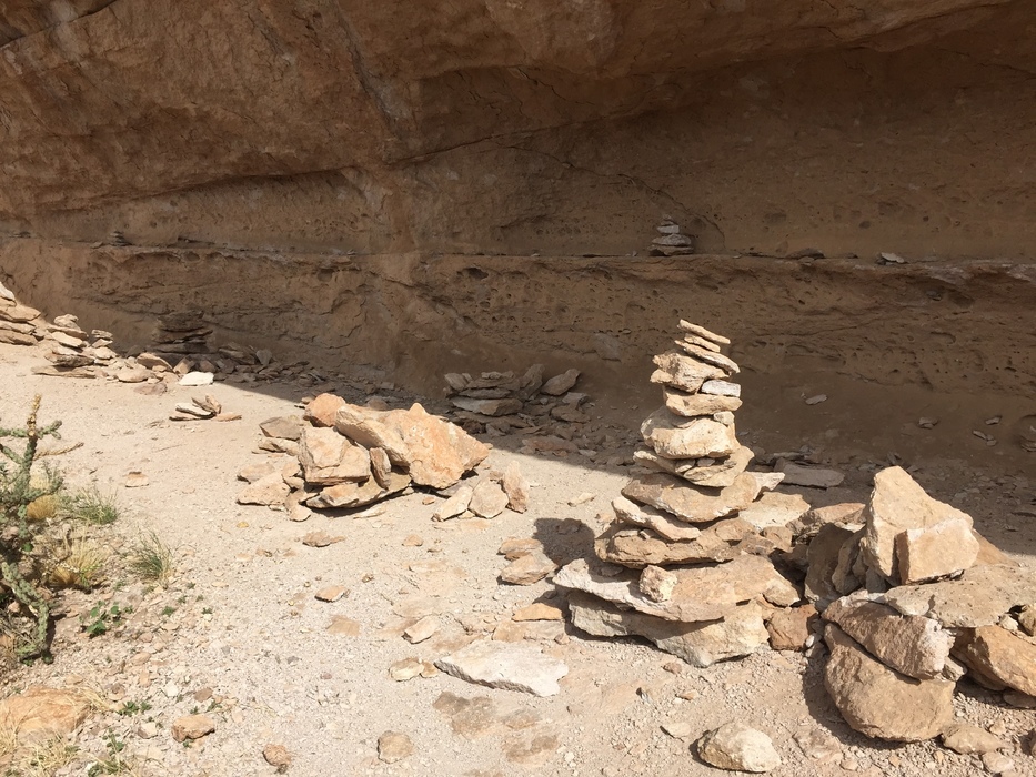 Someone (or something) didn't like the trinket room. Most of the cairns were tossed. Those standing now were recently added.