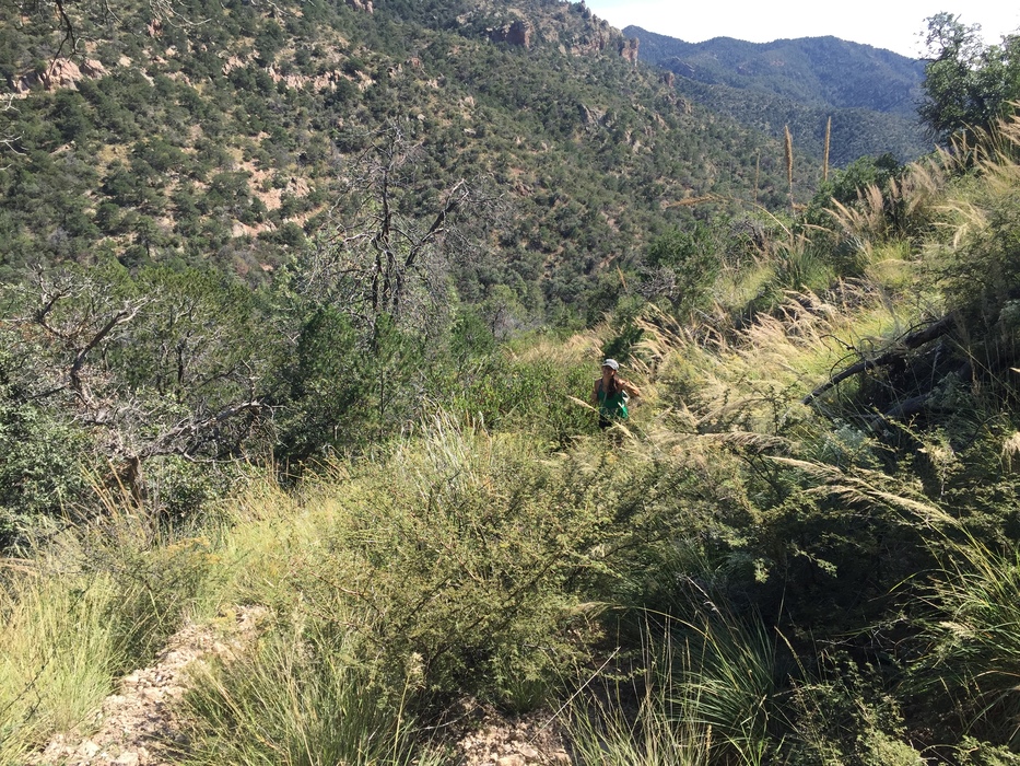 Claire joyfully fights here way through the catclaw on the return to the high point