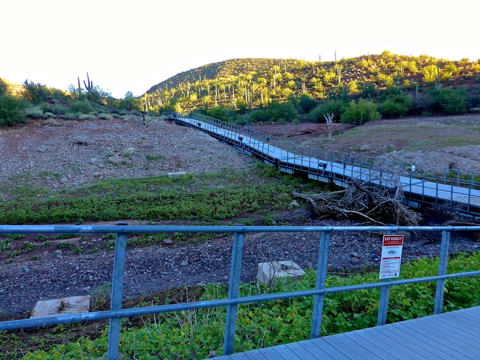 It has many hand cranks, cables attached to footings, and floatation under the bridge.