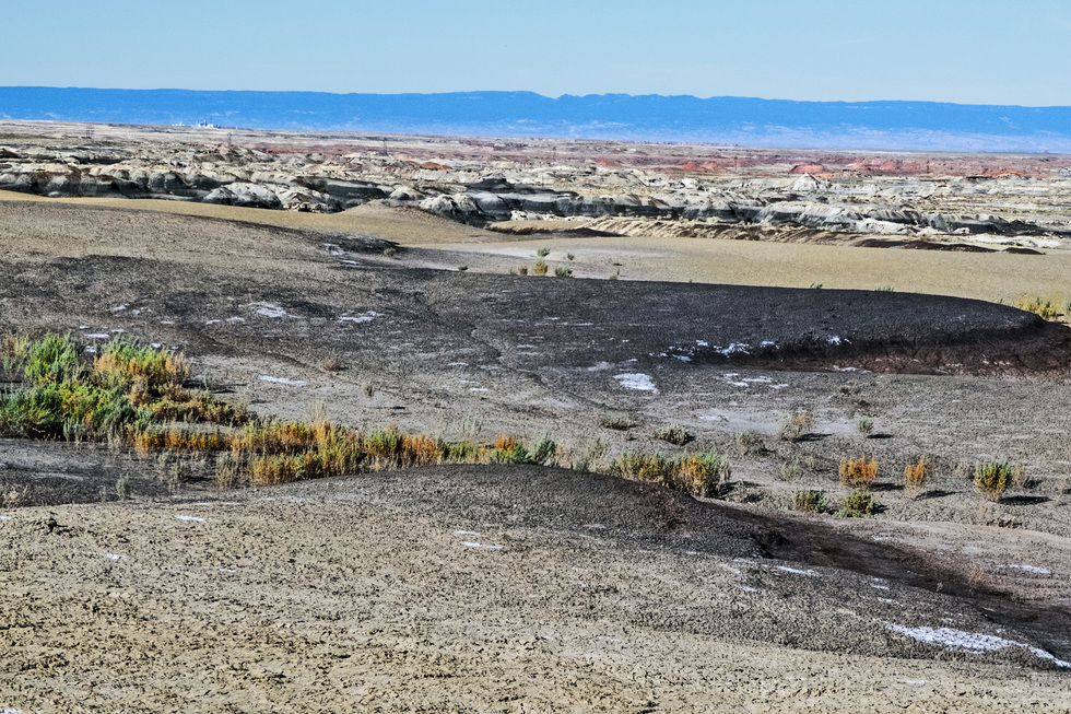 a view to the west. lots of Badlands out there. In the far background I think are the Chuska Mountains.