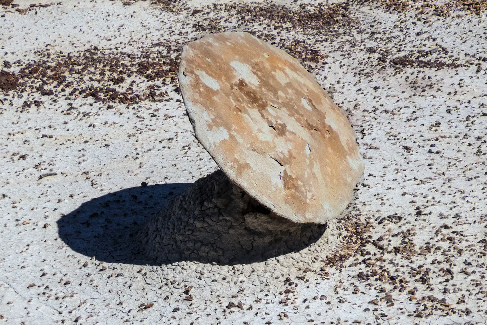 this shows you a last stage before the lid just hits the ground. We saw several of these lids that looked like they had fallen hard to the ground in this sideways manner thereby inspiring our song: Hoodoos, The Movie - It will Rock Your World.
