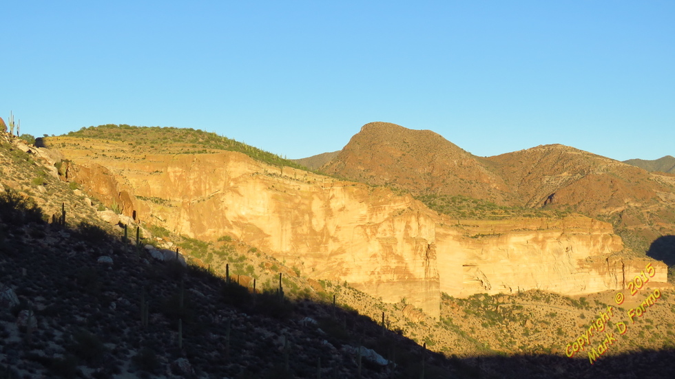 Peak 2893 and Copper Butte left-to-right. Tomorrow we will visit the alcove in the wall right and below the center.