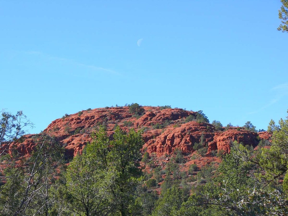 The moon zoomed in over the red rocks