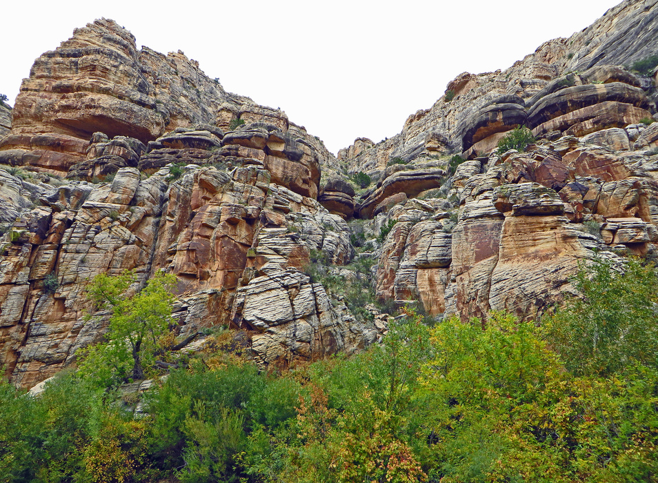 Views NNW. From my creek level location, it was unfortunate I was not able to view into any of these upper alcove areas.