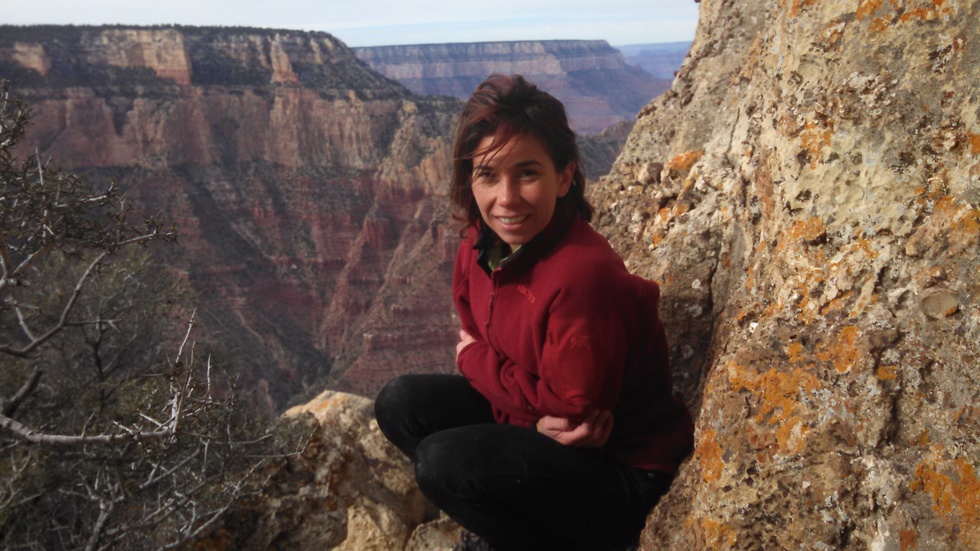 Huddling out of the wind on the climb down