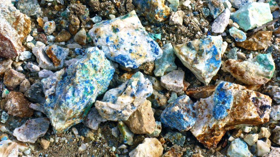 Deep blue bits in the tailings.
