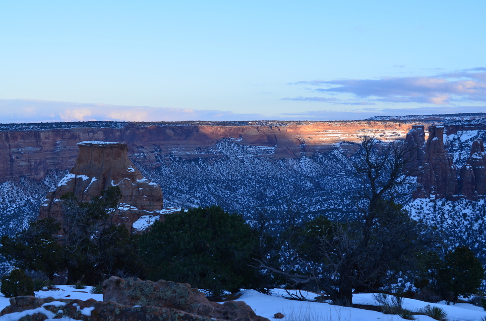 As you approach the point, Independence Monument appears. The clouds in the background are rolling off of Grand Mesa.
