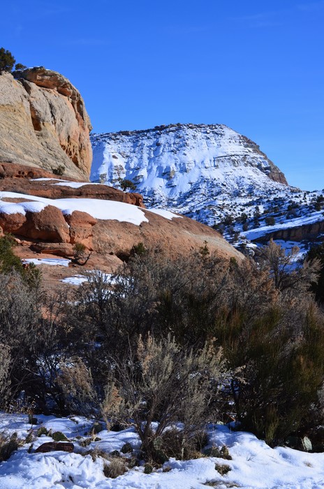 Redrocks and snow.