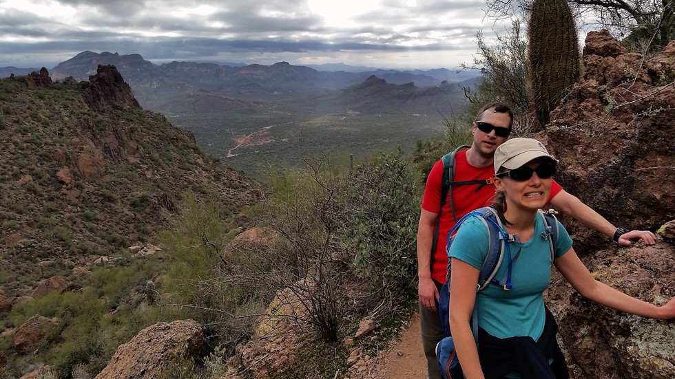 On the Climb to the cave, Rob and Lindsy pose for some fake smiles