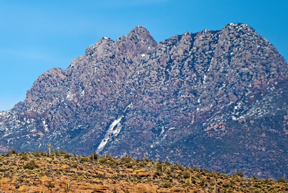 had to zoom in to see the last of the snow on the Four Peaks. That strip of snow in front almost looks like a waterfall.