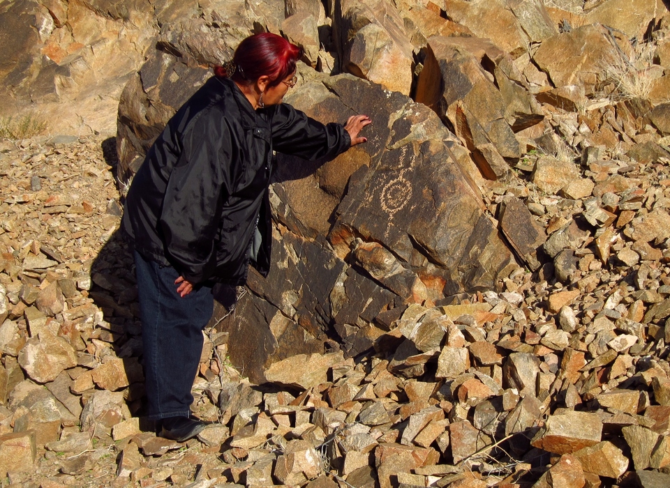 The Chairwoman admires a glyph.