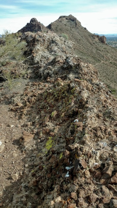see, a Ridgeline...this is looking east. It drops down pretty abruptly here going west. and then you ridgeline walk a little more before the straight down the side of the mountain ensues to join up with the Circumference Trail. I did those other two summits you see on the eastern side. Hadn't been up the middle hump for many years. I forgot you could get all the way to the top.