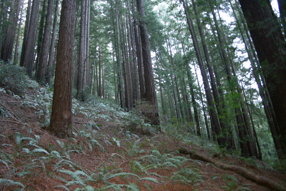Typical scene in the canyon bottom. Redwoods and ferns w/ a few scrubby bushes mixed in. This area was pretty dark, and I had to use the longer exposure settings. Hence the lack of detail.
