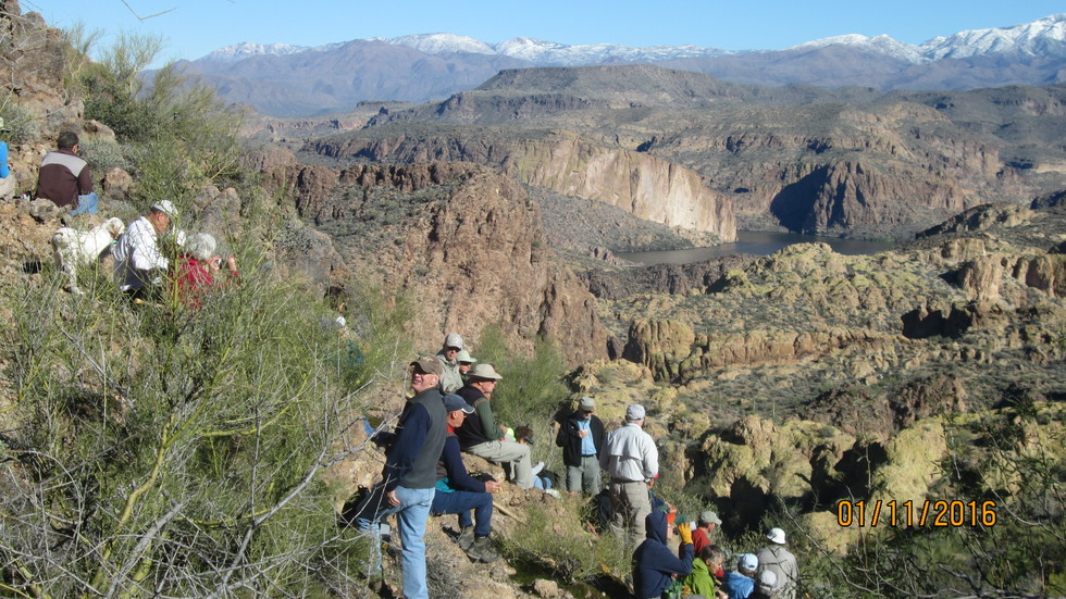 We meet the group coming from Apache Gap, share lunch and excitement of the vista's of Canyon Lake, 1st Water creek, and Four Peaks.