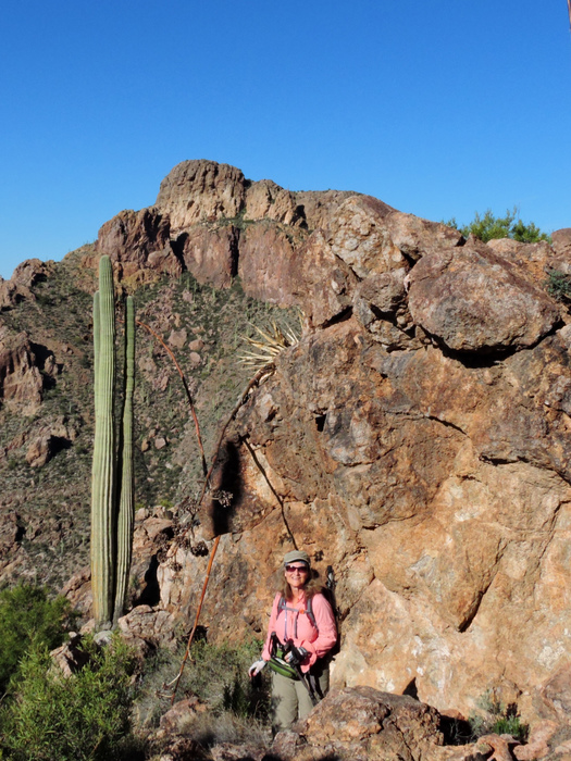 Angela waiting for me to check out a possible route through a slot in this cliff.