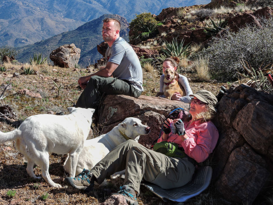 We re-connected with the other members of our group just above the arch view point. They had already ascended Fraser Peak. Can anyone guess who's carrying turkey jerky dog treats?
