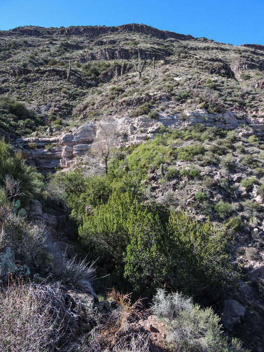 Continued across the hill side to Lewis Spring. A small lone cottonwood indicated there is some moisture here but I did not see any running water or any sign that it had a watering trough for cattle. It is most likely named for John Lewis who homesteaded the property known as the 6L Ranch in the early 1900s.