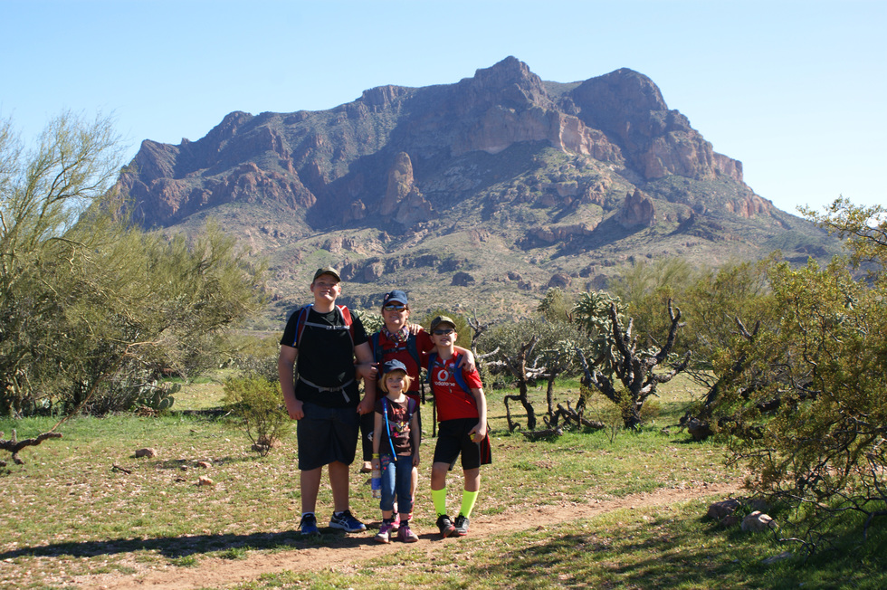 The Housholder Family Hikers and Picketpost Mountain our destination.