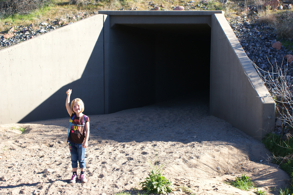 Bianka was excited to get to the shady tunnels underneath the US 60 Freeway!