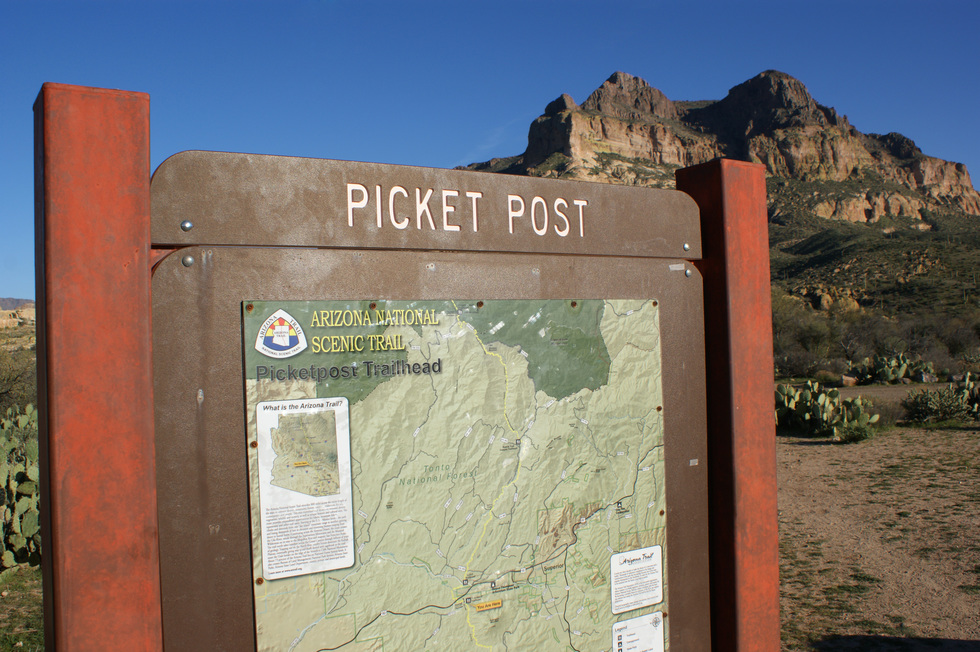The new sign at Picketpost Trailhead AZT sections 18 and 17.