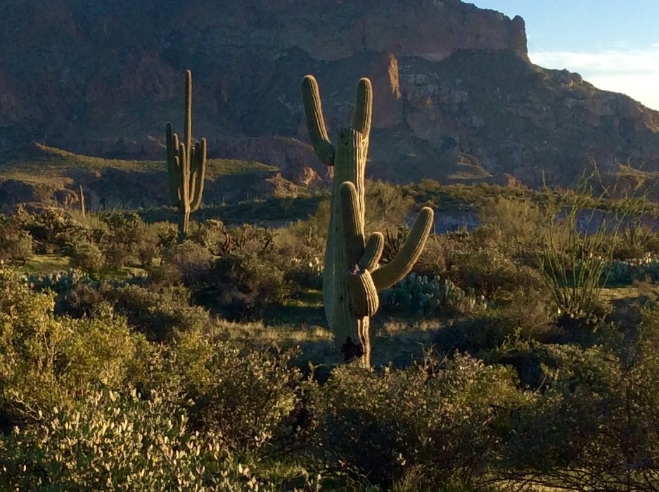The Peace Saguaro! This is where we will set up our Boondocking camp off right on a ridge just before crossing underneath some large power lines. The spot is far enough from the road to minimize dust from ripping fast quaders and dirtbikes, but may at times get some residual dust especially on a weekend. Sunsets here are fantastic!
