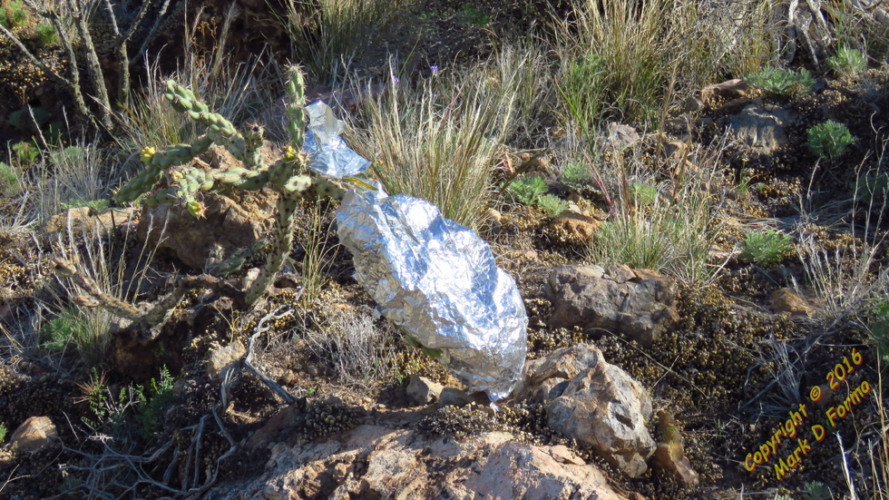 It was remnants of an 'Emergency Space Blanket' of which I happened to have its twin in my pack, albeit in as-yet unused condition.
